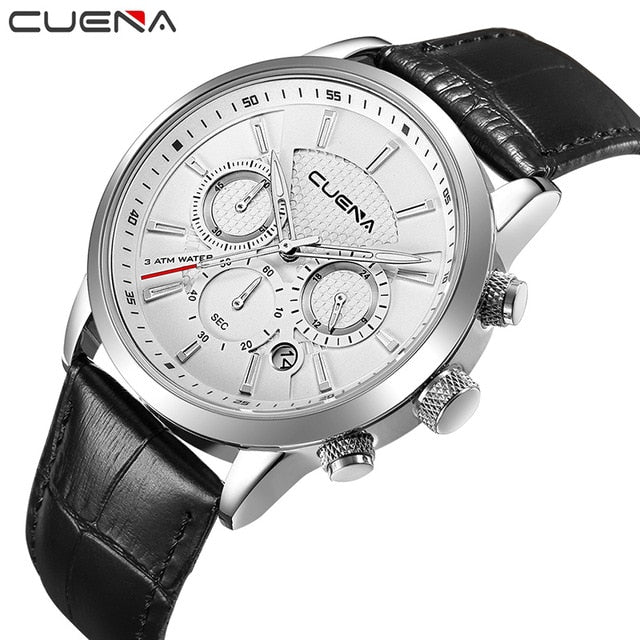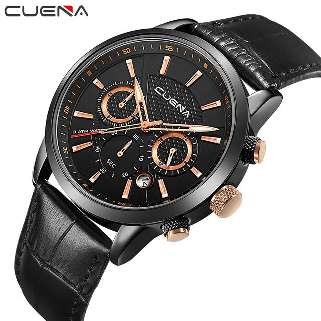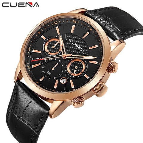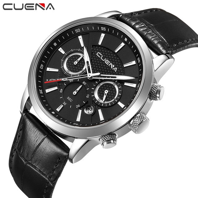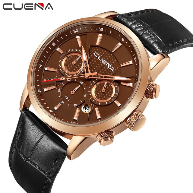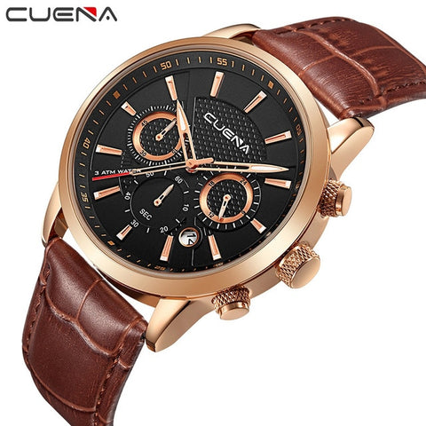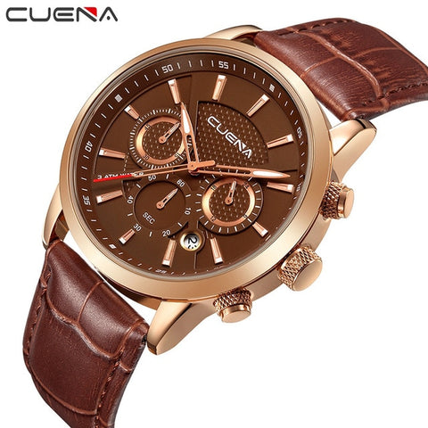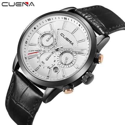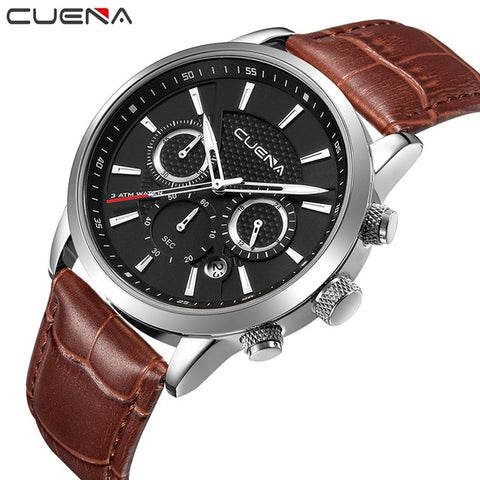 CUENA Brand Watches Men Fashion Analog Man Clock Genuine Leather Watch